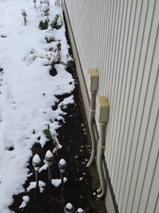 庇の下なのですが、これくらいの雪だと庇の下はあまり積もりません。雨もそうですが、庇はこのようなときに有効です。
