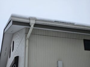 屋根にも積もりました。今回はこの屋根の庇のお話です。写真はわが家です。平屋なので比較的大きな庇をつけています。